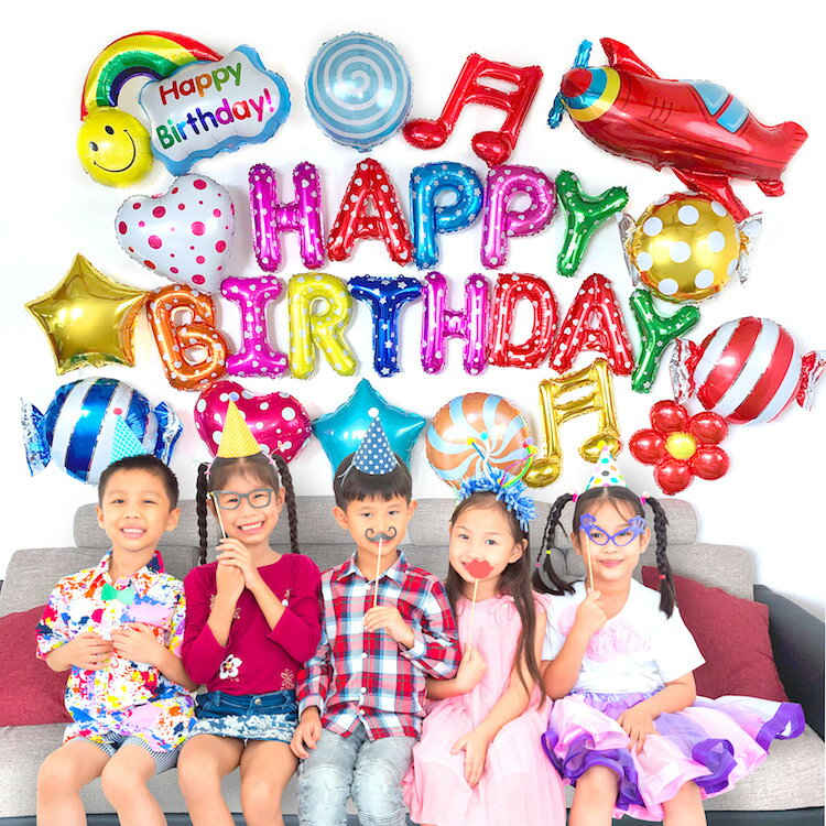 HAPPY BIRTHDAY メッセージ入りバルーン 単品 風船 フィルムバルーン 装飾 飾り デコレーション 記念撮影 お祝い 誕生日パーティー 飾り付け 六角形型 ファーストバースデー 男の子 女の子