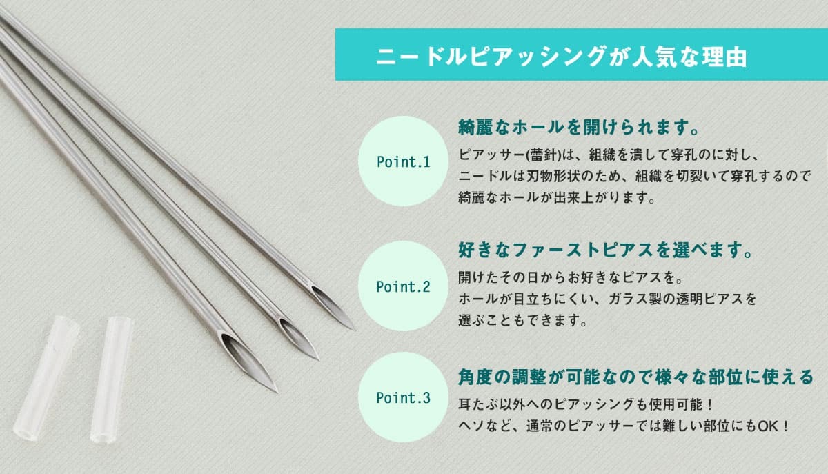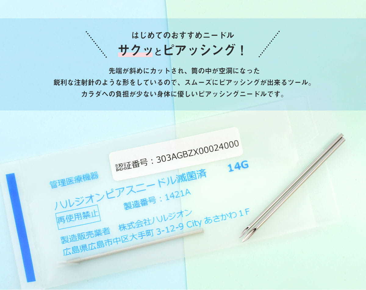 はじめてのおすすめニードルでサクッとピアッシング!スムーズにピアッシングが出来るのでカラダへの負担が少ない身体に優しいニードルです。