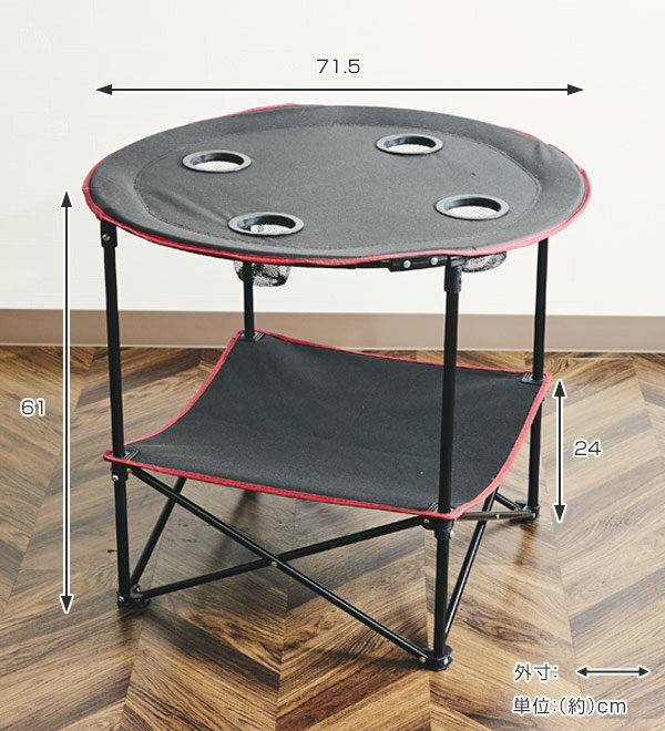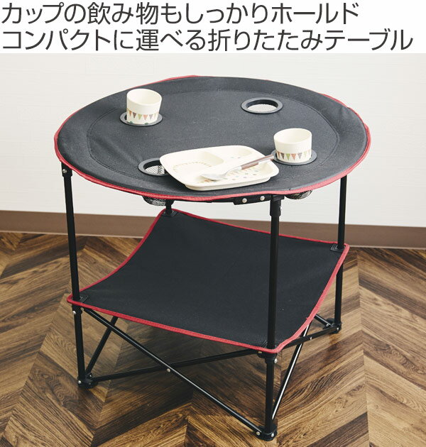 折りたたみ アウトドアテーブル テーブル 机 簡易テーブル ( 送料無料 シンプル 折り畳み コンパクト 持ち運び 収納棚付き コップホルダー付き カップホルダー 収納ケース付き 収納ケース お洒落 アウトドア キャンプ グランピング )【3980円以上送料無料】
