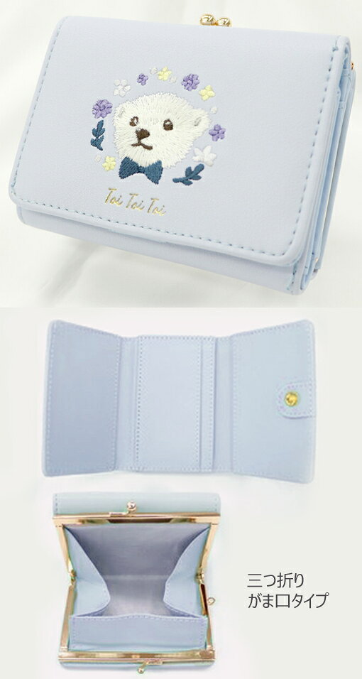 YBB1114【ホワイトベアーがま口3つ折り財布】がま口3つ折りタイプコンパクト財布 テディベア しろくまがま口折財布 ガマグチウオレットかわいいくまさん財布 シロクマさんがまぐち財布 トイトイトイ三つ折り財布 くまの財布定期入れ同時販売!.